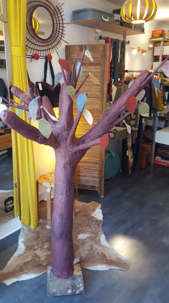J’ai créé cet arbre à partir de journaux, de mouchoirs en papier et de papier recyclé, notamment du papier de soie.